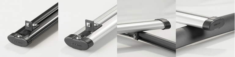Поперечины багажника имеют обтекаемую форму, позволяющую уменьшить сопротивление потока воздуха при движении автомобиля. Имеют стандартизированный паз под установку дополнительных аксессуаров для багажников: крепление лыж, велосипедов, корзин, и прочего с соответствующим типом крепления. Наличие антифрикционной вставки сверху профиля поперечин позволяет надежно закрепить груз и защитить от повреждений поверхность поперечин багажника. Вставка в нижний паз профиля предотвращает появление аэродинамических шумов.