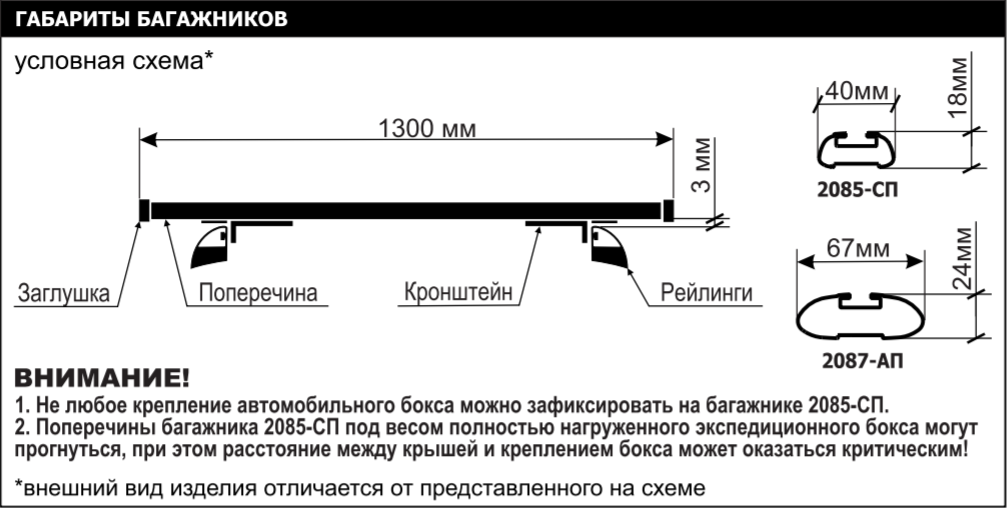 1. Не любое крепление автомобильного бокса можно зафиксировать на багажнике 2085-СП.