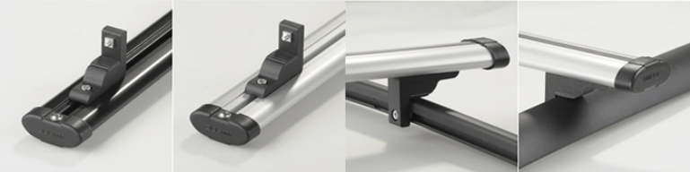 Поперечины багажника имеют обтекаемую форму, позволяющую уменьшить сопротивление потока воздуха при движении автомобиля. Имеют стандартизированный паз под установку дополнительных аксессуаров для багажников: крепление лыж, велосипедов, корзин, и прочего с соответствующим типом крепления. Наличие антифрикционной вставки сверху профиля поперечин позволяет надежно закрепить груз и защитить от повреждений поверхность поперечин багажника. Вставка в нижний паз профиля предотвращает появление аэродинамических шумов.
