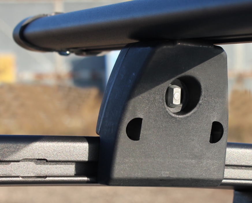 Элемент крепления багажника обеспечивает расстояние между профилем рейлинга и поперечиной 50 мм, что позволяет значительно уменьшить аэродинамические шумы, а так же обеспечить свободный доступ к элементам крепления дополнительного оборудования и грузов, располагаемым под поперечинами багажников.