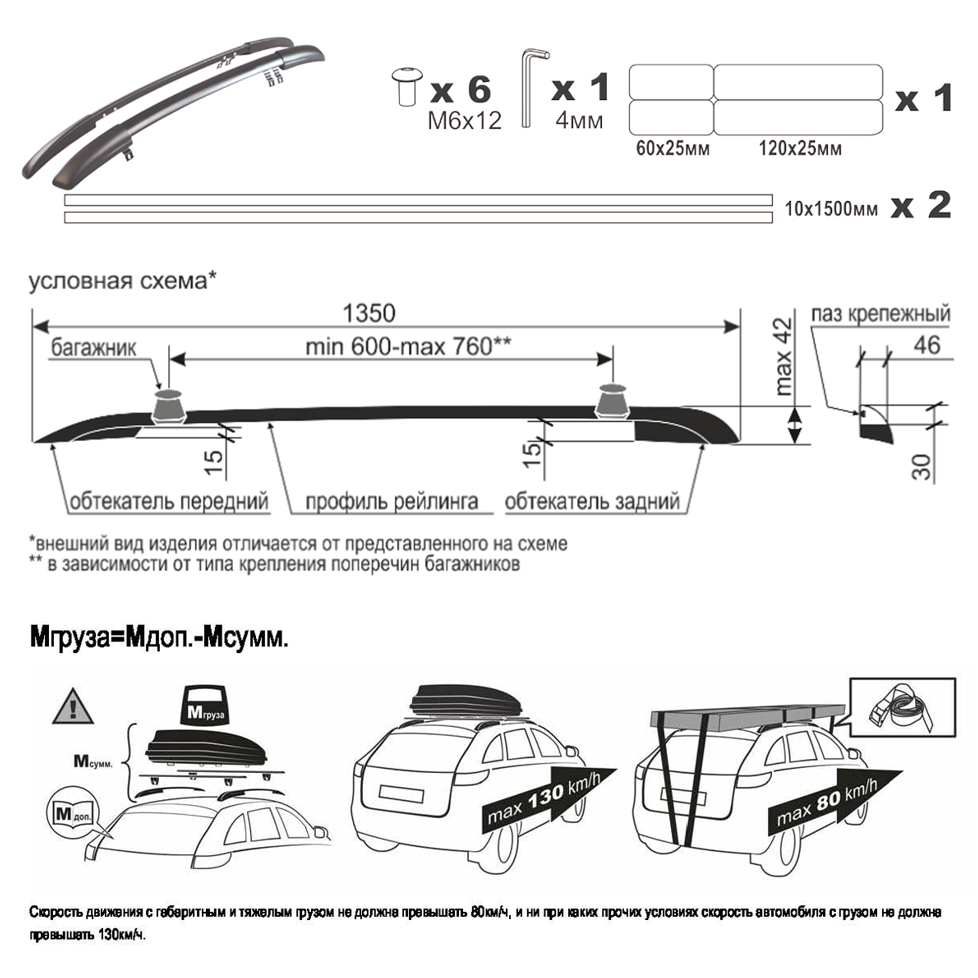 Конструкция рейлингов позволяет устанавливать багажники других производителей в обхват алюминиевого профиля.